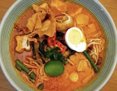 - 椰浆味比较重不会很辣,而且配料很是丰富,除了虾、鱼丸片、鸡蛋、豆卜等,还有酥脆的炸饺