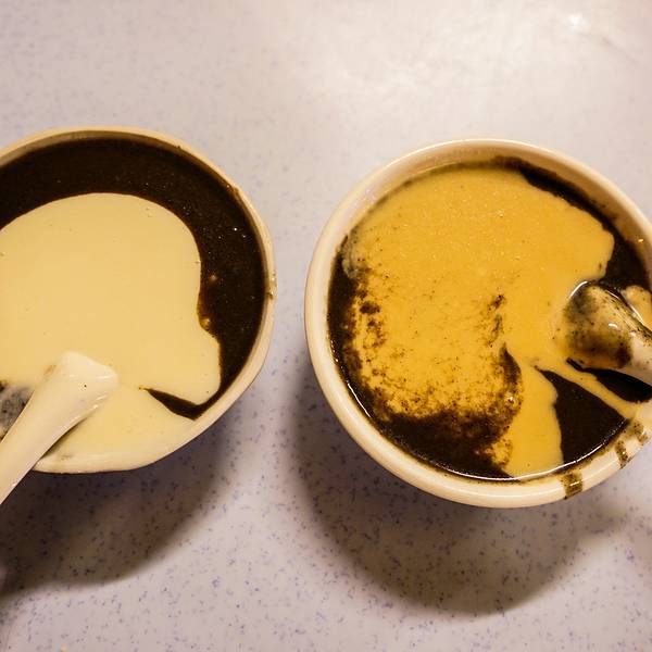 夜宵是芝麻糊,听说是一家超火爆的糖水店,平时还会给芝麻糊做造型,我们今晚点的时候他就比较随意了,失落脸。