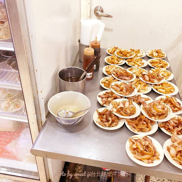 来到台湾不得不试试牛肉面,第一次来的时候原本想吃牛肉面,但刚好碰上周一想吃的牛肉面店休息,没有品尝到,这次来弥补一下上次的遗憾。建宏牛肉面是台北一家老字号比较出名的牛肉面店,原本是哥哥和弟弟一起经...来到台湾不得不试试牛肉面,第一次来的时候原本想吃牛肉面,但刚好碰上周一想吃的牛肉面店休息,没有品尝到,这次来弥补一下上次的遗憾。建宏牛肉面是台北一家老字号比较出名的牛肉面店,原本是哥哥和弟弟一起经营,后来各开一家,哥哥的店叫富宏,弟弟的店就是建宏。这里的牛肉面,面条是粗粗的,牛肉很大块,卤得很香,汤底和面都好好吃。