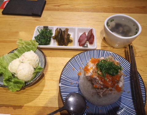 【商铺位置】连江北路与化工路交叉处东二环泰禾城市广场边上店铺,离主体综合体还有点距离,不过顺着导航走很快能找到。 【商铺环境】带点日式风格的装修,干净小清新,店外也有座位。 【商铺餐点】选了金枪鱼饭...【商铺位置】连江北路与化工路交叉处东二环泰禾城市广场边上店铺,离主体综合体还有点距离,不过顺着导航走很快能找到。 【商铺环境】带点日式风格的装修,干净小清新,店外也有座位。 【商铺餐点】选了金枪鱼饭套餐,另外点了一份土豆泥。这个金枪鱼饭真是出人意料的好吃呀,上面浇有鱼子酱,把金枪鱼泥和饭拌在一起吃真是超级好吃,每一口都有鱼子在口中爆开的感觉,真是值得点赞,推荐大家体验试吃;套餐配有小菜,和豆腐汤,还有一杯酸梅汁,有点偏甜了,太甜就没怎么喝了。一般到日料店都喜欢尝尝他们的土豆泥,很不错呢,土豆泥也很好吃,推荐。 【商铺服务】态度很好,很热情,很周到。