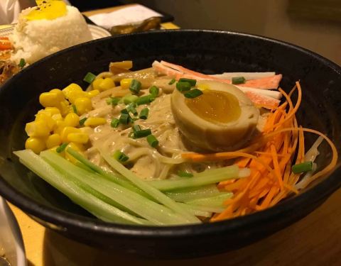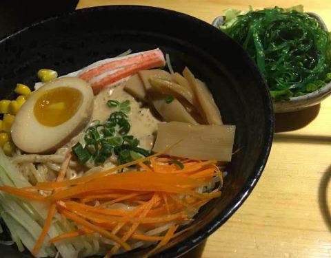 离凯宾斯基很近,装修油漆味好重,到饭点高峰提前来的,点了芥末小章鱼、冷面、蟹子手卷、鳗鱼手卷共¥58,价格实惠,性价比算中等