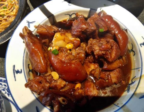味道很不错,吃饭的人特别多。去的晚了还得排队,黄豆闷猪蹄很香。
