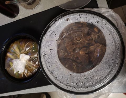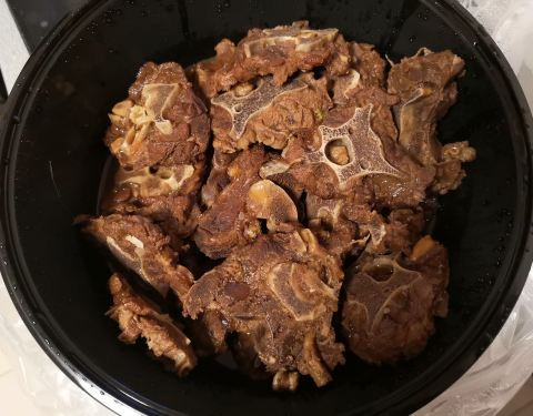由于我们只有两个人,所以点的不多,一份中份的羊蝎子火锅,份量不小,两个人吃最后还剩四块实在吃不...