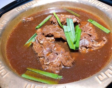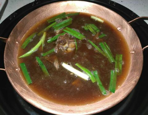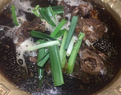 - 由于我们只有两个人,所以点的不多,一份中份的羊蝎子火锅,份量不小,两个人吃最后还剩四块实在吃不...