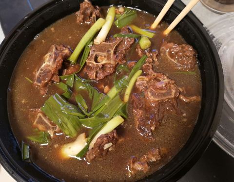 周末中午冰天雪地想吃点补补身子,在巴黎春天转了半天最后选了这家羊肉火锅店。由于我们只有两个人,所以点的不多,一份中份的羊蝎子火锅,份量不小,两个人吃最后还剩四块实在吃不下了,打包回家。羊蝎子上的肉...