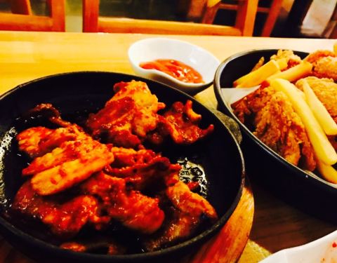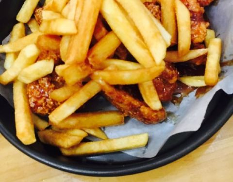 - 分量多,吃不完打包走的)。点了炸鸡(最爱酱味韩式炸鸡。这个实在超级推荐。咸度适中。根本停不下来