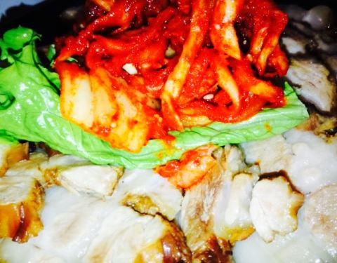 叫的外卖,本来期待不大的,没想到水准很高。炸鸡一半一半,原味的比较可口,虽说是外卖依然有不错的脆度。咬下去鸡汁溢出很不错。搭配的萝卜泡菜很可口。包猪肉正餐价廉物美,肥而不腻,配搭的蘸酱很地道,自家的泡菜也是水平很高。泡菜汤辣的很舒服,不过不会太超过。只有海鲜年糕可能因为是外卖,稍稍有些腥了。