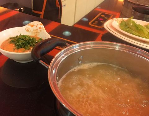 - 环境不错,干净,装修是雅致的中国风格,小料丰富,肉质细嫩,点的番茄底锅,汤味道不错,就是价格有点小贵