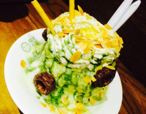 一直想尝尝“绵绵冰”,因此选择了晴光粉圆点抹茶绵绵冰