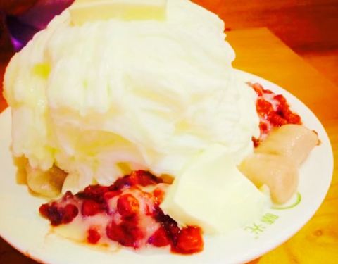 和盆友无数次的吃,从夏天吃到冬天又回到夏天。最爱抹茶的好开森和芒果的绵冰,尝试过巧克力的,不过上来的造型容易引起歧义,味道也有点hou,所以每次就是开森再开森了哈哈。芒果棉冰,很舒心的大块芒果,好评的是每一块芒果都很甜咩,加上适口的芒果酱和阿棉冰,入口就是满满的幸福感。好嗨森东西就多啦,像个各种小东西大聚会,喜欢抹茶口味的不能拒绝呀。杨梅的木有尝试过,每次都想吃可是到头来依旧回到了开森上。甜品份量很足,两个人足够的,但是像我们这样一定要追求爽的就例外了,有一次吃了仨,结果我和盆友愣是吃到冷的浑身发抖,눈_눈。哦对了,最后吼叫一句,老板呐,菜单要换啦,好几页都破了口咩,细节,细节呐。