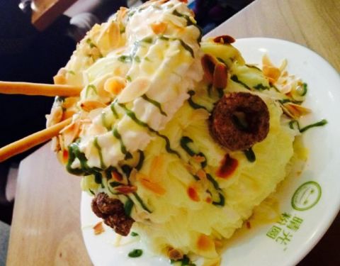 位置在食品街的中段,店面算适中吧,人还是挺多的,服务态度挺好的,上甜品的速度也挺快的。这次试试的是红豆抹茶的沙冰和芒果的沙冰,本人觉得芒果味的沙冰味道还不错。抹茶的味道有些淡,并且加的奶酪味道也有些淡。