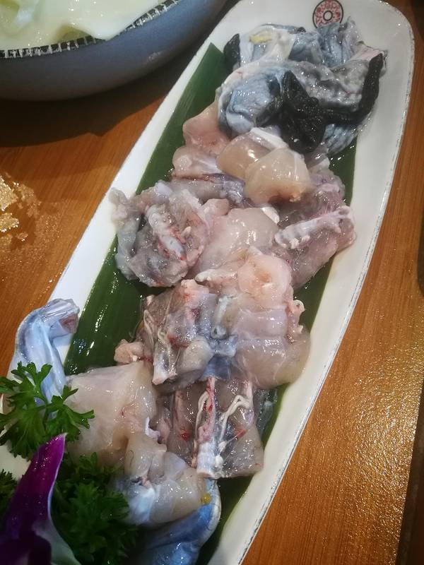 今天的计划是去潮州,不过汕头好吃的实在是太多了,差点排不过来啊!临走之前的中饭,又安排了一顿卤水火锅。围炉夜话卤水火锅也是爱彼迎房东推荐的,听说排队的场面极其恐怖,强烈推荐我们提前拿号,于是我们决定,还是中午去吧! 火锅全国各地很多了,卤水火锅倒还是第一次吃。潮汕的卤水也跟别的地方口味不一样,据说是因为南姜,真是好吃,不过倒不是因为卤水有多特别,最重要的还是是食材新鲜! 活杀田鸡,端上来田鸡已经被切成块了,大腿肌肉还在一跳一跳;竹签虾,放在一个玻璃杯里,每个大虾有手掌那么长,拿着签子从杯子里拿出来的时候,大虾腿都还在挥舞求饶,有点可怜,但实在是太新鲜了,真抱歉啊!豆腐鱼真的吃起来和豆腐的口感一模一样;鹅肠比鸭肠吃起来爽很多。吃了一个多钟头过去买单,小姐姐说啊你们这么块就吃完了。原来潮汕人吃卤水火锅是一边吃一边聊可以吃整天的节奏?难怪排队那么恐怖。。。一锅卤水,看起来毫不起眼,滋味无穷豆腐鱼,口感跟豆腐一模一样