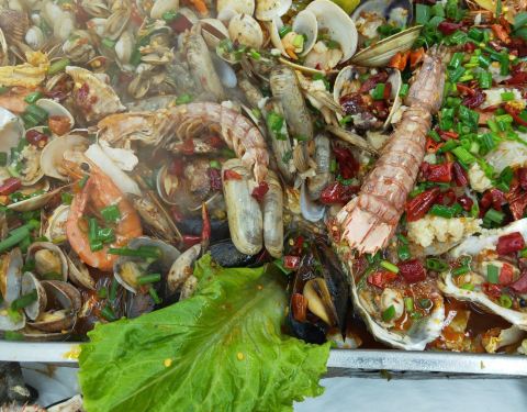 ...,他家的海鲜价格比周边墟沟海鲜美食城的价格便宜的多,而且海鲜也都是非常的新鲜,味道也十分的美味