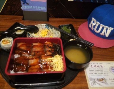 一进来就在放樱桃小丸子、满满的情怀风、店是老姐推荐的、吃的日式鳗鱼定食是店员推荐的、口味不错、打算之后尝试其他的菜品。唯一美中不足的是、对面的喇叭一直在放鸭子的各个身体部位的报价神烦!