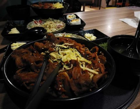 要的黄金咖喱鸡排蛋包饭,鸡排炸的恰到好处很好吃,蛋有些甜,小菜、汤都可以再加,总体来说很好。美中不足是咖喱略咸,也可能因为我口味淡。不过还是很好的!