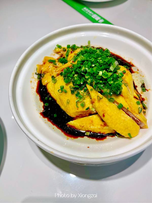 第一个上桌的葱油鸡,很惊艳地登场了:鲜嫩的鸡肉鸡皮和葱香四溢的调味汁,放入口中时忍不住赞叹一下 - 真是太好吃了。
