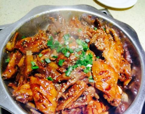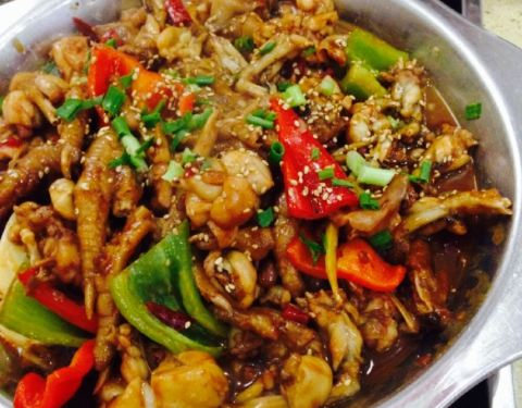 ...,这次点了明虾煲,里边的虾还很多,配菜有鸡爪,豆腐,洋芋,个人感觉鸡爪很鲜美,煮的很烂也很鲜美