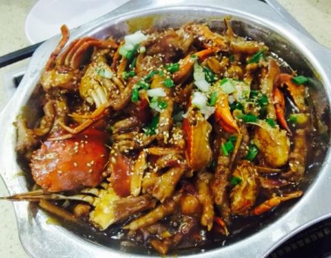 在二七金街这边,朋友带着来的,说是好吃不贵的一家店。正好碰到店里有活动,在店里现点比团购还划算。晚上七点左右,店里三楼和二楼基本上坐满了,就直接在一楼坐的。点餐后,十分钟左右就上去了,每人还送了一碗白饭,不得不说,米饭很鲜美,又滑又Q。点的肉蟹煲,里面有螃蟹和鸡爪,配菜是年糕和马铃薯。微辣的,麻辣刚刚好,螃蟹很清新,也很可口,很舒服。鸡爪特别烂,骨头和肉都分开了,吃着特别省心。年糕感觉不正宗,有点面,像是掺假了的。还送了一杯水,说是酸梅汁,褐色的,讲真,一点没喝出酸梅汁的味道。环境还可以,毕竟是在眼花缭乱的小吃街里,味道是棒棒哒,很开心,下次还会再去。