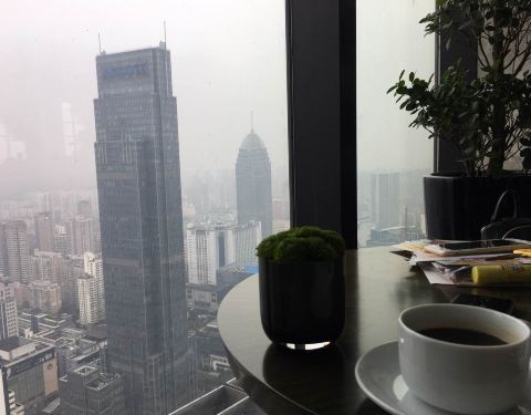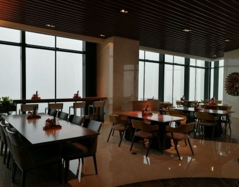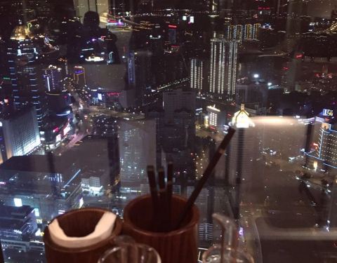64层,一个吃无锡菜,另一个咖啡厅吃自助。如果只是为了看风景,那完全可以选择这里。
