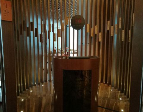 听说这里是无锡最高的苏宁凯悦酒店64楼,一间价格平民的简易餐厅,叫面。对,就是主要吃面的,主打红烧牛肉面和黄鱼面。6点半到达,人不多,安排窗边了,看着太阳西下,看着无锡华灯初上,值了。点了黄鱼面,鱼起了骨头,去了头尾,鱼肉两半煎香,估计鱼骨也是煎了做汤,所以汤头奶白色香浓清甜,但是好像没有用姜去腥味,同样鱼肉虽然皮脆肉滑,但是没有用任何酱汁去腥味,拌面的雪菜也没有炒过,带淡淡的苦涩,所以味道来说一般啊。萝卜丝饼外皮酥脆,可是内馅的萝卜丝完全没有水分,很干,也没有萝卜的甜,一般啦,桂花糖芋头挺粉的,糖水飘着桂花又香又甜,这个挺好吃。虽然这里的东西不算好吃,但是64楼看夜景的环境,凯悦酒店的环境,比香港茶餐厅还便宜的价格,性价比还是高。