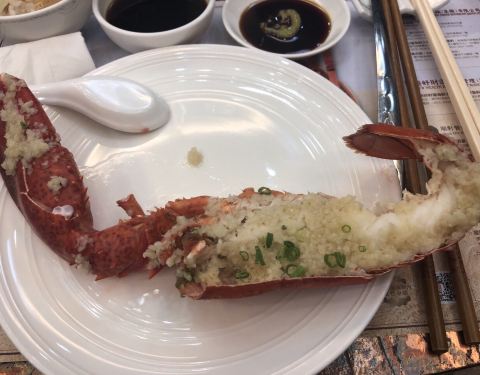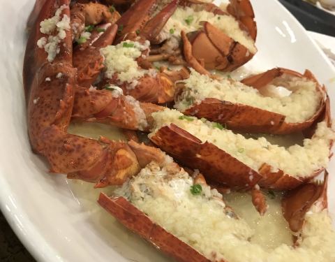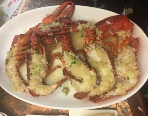 中午来吃的,比较便宜288一个人,还送鲍鱼和龙虾,晚上七个人还会送红酒,这个天还不错的,可以吃饱,送的龙虾品质一般,鲍鱼还不错。
