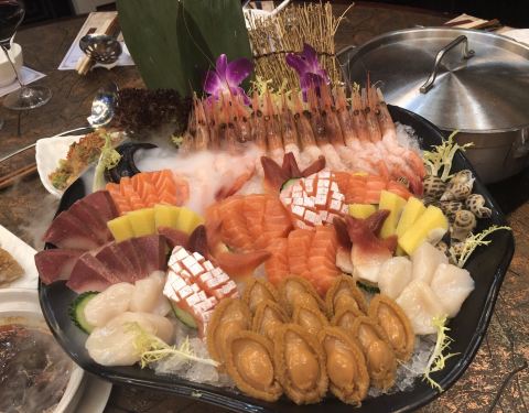 自助火锅328/位。各类刺身、肉、海鲜、青菜、主食,品种挺全的,食材也挺新鲜的。大晚上的吃自助真是罪过!不要嫌弃虾为什么小的像基围虾,大的那是单点的。哈哈。人家服务员就是爱说实话!对了这里面的大油条挺...自助火锅328/位。各类刺身、肉、海鲜、青菜、主食,品种挺全的,食材也挺新鲜的。大晚上的吃自助真是罪过!不要嫌弃虾为什么小的像基围虾,大的那是单点的。哈哈。人家服务员就是爱说实话!对了这里面的大油条挺好吃的。