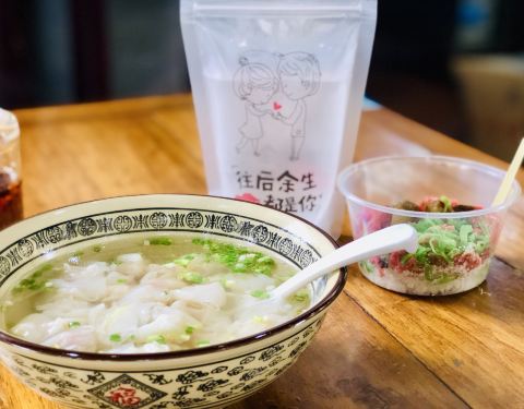 这是一个吃早餐的好地方~ 坐标:园林路288号(大红色灯笼下面) 环境:沿河的门面很小,广场那一面的门面大一些,不过最近貌似关着门,还是比较容易找到的。 里面装饰的也比较简单、古朴,有老字号的味道吧,方桌、长板凳,这些都是很久以前的餐馆标配了。 服务:阿姨态度还是很好的,只是人多了容易送错餐点。 「小混沌」 ¥12.00 皮薄馅肉很多,还是小馄饨的皮最好吃啊,里面的肉肉很多哦,不是那种小馄饨没有肉的,是有好多肉的这一类,不错[强]推荐这个早餐。 「多样汤」¥10.00 色素组合成的八宝饭配料+冰镇薄荷水 里面的蜜枣倒是真的许久没吃了,还蛮想念的,就是说里面有蜜枣,我就买了,后悔了,还是别点了。肠胃不怎么好的我,喝了一口毁了一天,刚喝就开始闹肚子,冰的过了,然后吃药都挡不住她的力量,最后午饭、晚饭都没吃……