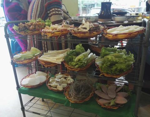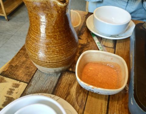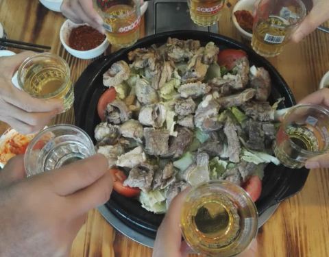 生意非常火爆,味道没啥特别的,和上海的羊排火锅差不多,老公了瓶雕梅酒,没想到度数好高,喝了几口...