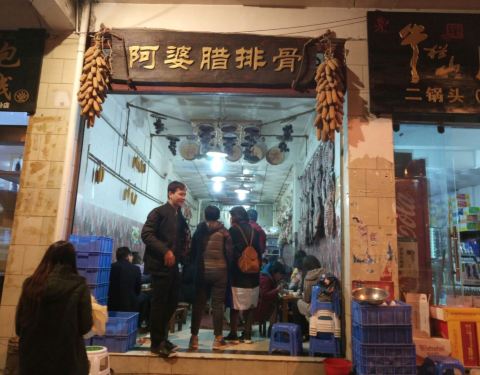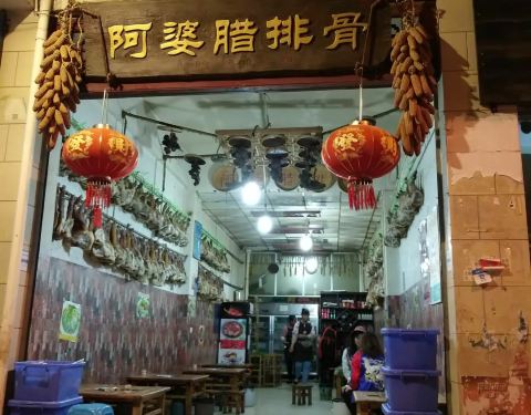 从玉龙雪山游完回来,自己一个人去阿婆腊排骨吃的饭,店面不大,但是离我住的地方挺近的,墙上都挂满了火腿,挺壮观的,自己点了一份腊排骨,感觉吃的饱饱的,味道不错。并且去里面吃饭的都是本地人,应该挺受大...