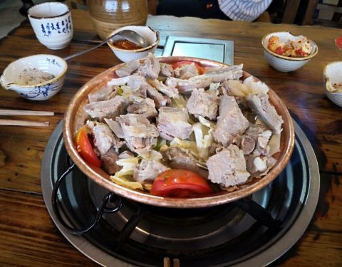 大理古城人气比较高的饭店,正好住的酒店门口就有一家,中午特意尝尝,98双人餐很划算,腊排骨中锅,菜任选五份,两个人吃的饱饱的,排骨味道挺不错的,蘸料好吃,推荐一下。
