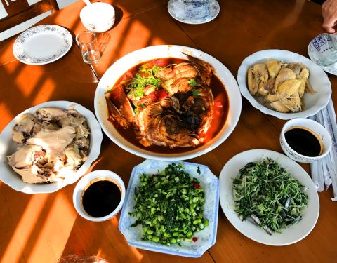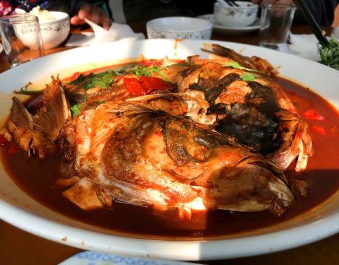 时隔三年又来这家店,路过就近选在这里,刚到中午所以没有什么人,他家点菜特别简单,就看白板上写着的来点就行了。 手抓鸡:那年是45一只,现在是58一只,物价都在上涨,可以理解。鸡肉依然很嫩,不过不是小草鸡,是小洋鸡,但味道还是很不错的,咸鲜的味道很适合大众的口味。一家人都很喜欢这个菜。 红烧鱼头:怎么说呢,鱼头是不错的,一点土腥味都没有,但是厨房里的师傅实在是不会烧呀~矮马~用不知道是啥味的辣椒酱掺在里面,红烧鱼头咱就放些酱油烧不好吗?唉~~~ 腌菜花炒毛豆:略有些生味,但总体还是不错的,如果稍再炒时间长一点味道会更好。 芹菜拌干子:为啥要是臭干呀,亲?普通的香干不挺好,偶滴个神呀,这个芹菜看着好嫩的,但问题是我看过工厂和小作坊做臭干的过程,所以从此外面的臭干我基本都不在碰了! 总结一下:饭店还是那个饭店,手艺还是那个手艺,服务还是那个服务,唯一不变的是价格。不能说最好,但还是特有农家特色的,可以尝尝。