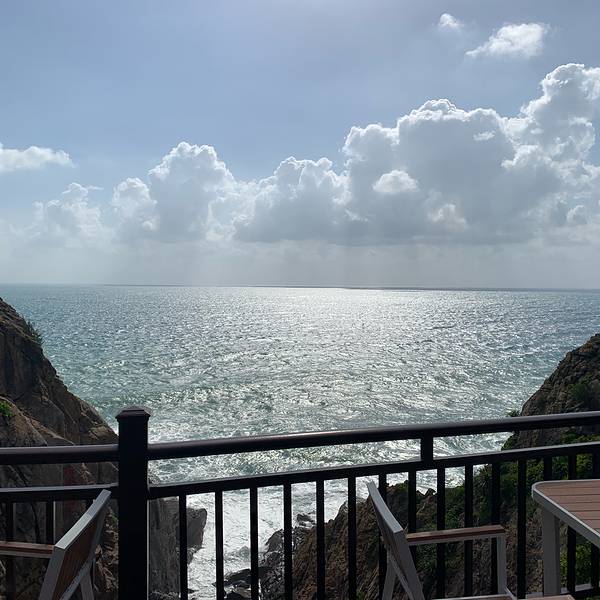 环境满分,悬崖餐厅,菜品还是比较丰富的,服务员很热情,主要就是看看海,听听浪,小风一吹,别提多舒服了,正对着的大海,能明显看到两边天空颜色的差异,分界洲,牛头下雨牛尾晴