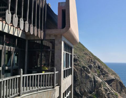 悬崖峭壁上的餐厅,吹着海风用餐十分惬意