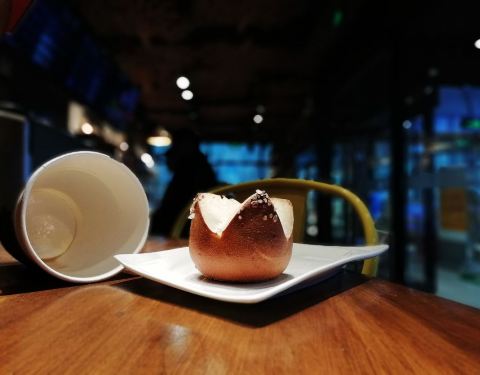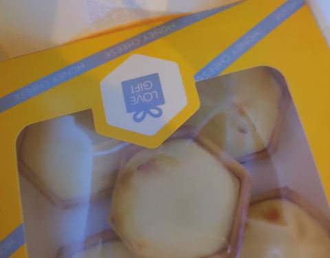 这家的蛋挞一直听朋友推荐,昨天正好路过,那就买来尝尝。到手后马上尝了一只,图上那样的把蜂蜜浇汁上去,店员说蜂蜜是掺在了蛋挞馅里的,不过说实话我没品味出来。外皮似软饼干,不是酥皮的,内馅的芝士感很浓郁,微酸,好吃的。当天没吃完,放到第二日外皮更软得无劲。