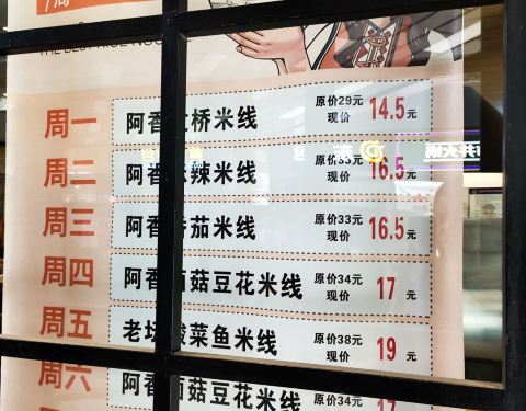 多种口味可供选择,周一到周日每天一款特价,每一款米线可免费加一碗米线,对食量大的朋友来说特划算