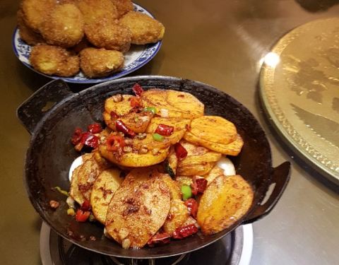 楼顶种完菜全家集体到对面的的锅舍印象,经典山西晋中菜。20:30点到店菜基本没有什么菜了,厨房21:00点下班。点了鸡丝凉面、熬鱼、过油肉(两份)、烩牛杂、猪皮黄豆、油糕、干锅土豆片、刀削面等。可惜猪皮黄豆吃出个烟头。