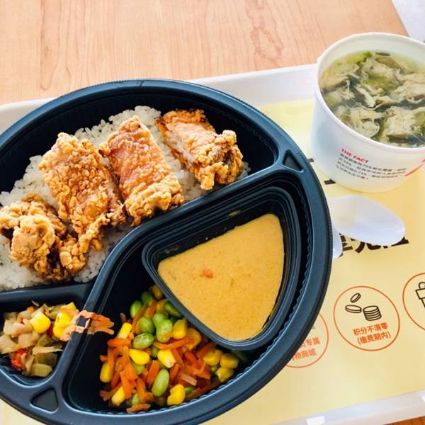 这样才好吃哦,咖喱拌饭是真的可以吃好多碗啊,味道还不错,就是鸡腿有点点太硬了,感觉炸过头了啊,...
