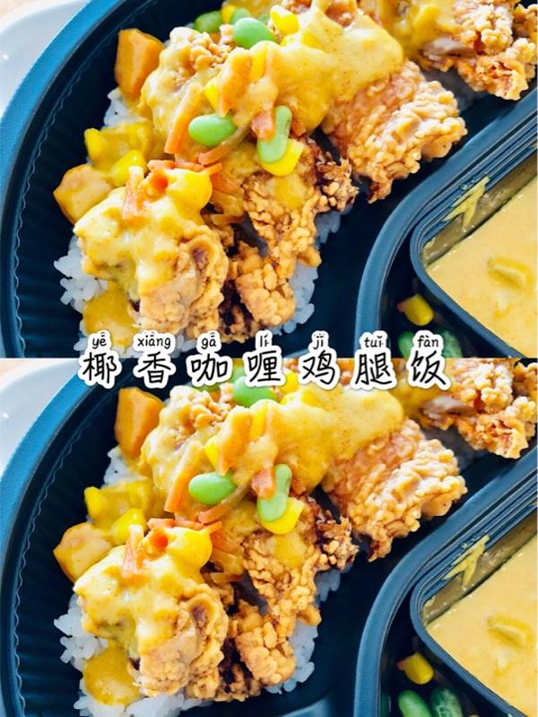 - 这样才好吃哦,咖喱拌饭是真的可以吃好多碗啊,味道还不错,就是鸡腿有点点太硬了,感觉炸过头了啊,...