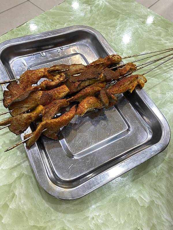 生意在饭点的时候是不错的,路过的行人也会停下来买一份吃吃的… 尝试着像当地人一样买了一份烤羊腿边走边吃…羊腿烤的不错…挺相的… 问了店家,吃饭能不能提供发票,店家回答说:我们这里都没有发票的!