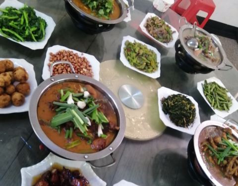 - 晚上一行人吃一大桌饭,味道超级棒,地道的农家菜,价格也合适,还有土灶的锅巴粥,非常好喝