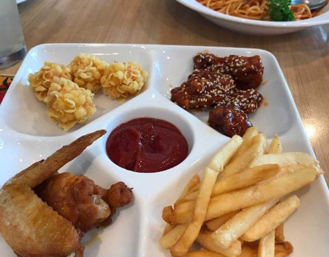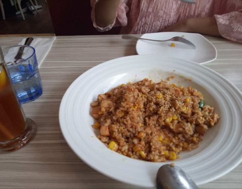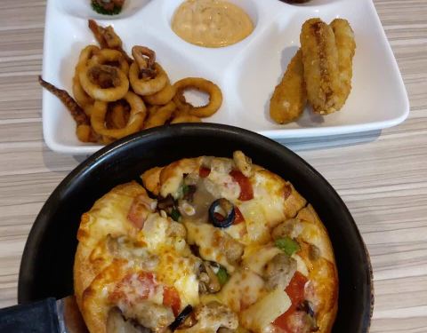 【口味】这儿的鸡肉炒饭,虾球披萨都不错,味道好极了。值得推荐的是榴莲披萨。味道特别纯正。很好吃。 【环境】店里装修的还不错,桌椅都比较干净。。 【服务】服务周到热情。