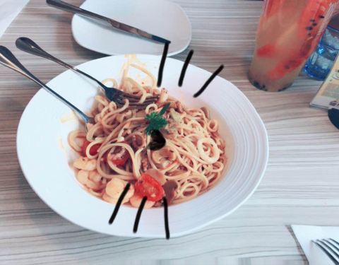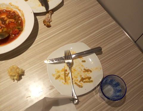 挺好吃的,尤其小龙虾披萨,还有虾尾,两个人吃了一百七十多,挺饱的,棒棒哒!!!最后吃成这样,一点都不剩,