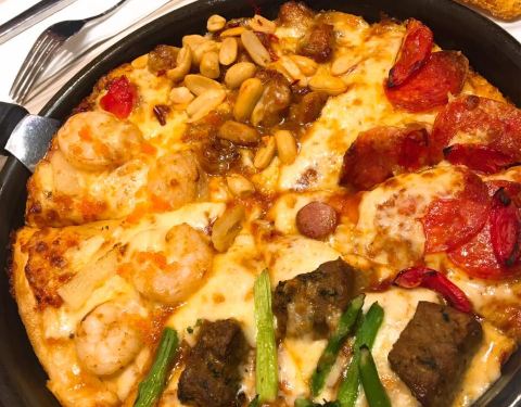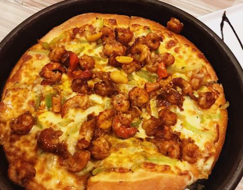 - 挺好吃的,尤其小龙虾披萨,还有虾尾,两个人吃了一百七十多,挺饱的,棒棒哒!最后吃成这样,一点都不剩,