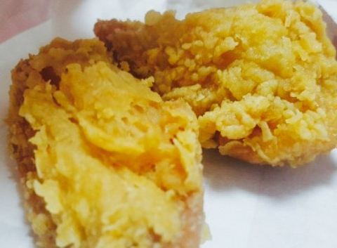 - ...炸出来的,外酥里嫩的,大鸡腿外面香脆好吃,也非常有味,可是到里面就不行了,淡淡的,什么味都没有