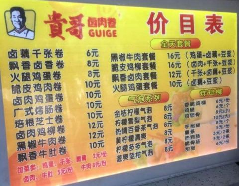 贵哥卤肉卷是一家联锁店,在玉林也有好几家分店。卤肉卷有非常非常多种口味可以选择,价钱在十块钱左右不等,套餐也就15-16左右。个人比较喜欢牛肉卷和鸡柳卷。卤肉卷咸甜适中,酱料搭配适中。店面位于一条巷子里,对于老顾客来说还是很好找的,店面很小,适合外带,吃了好多次了,很平价的小吃,性价比很高,极推。