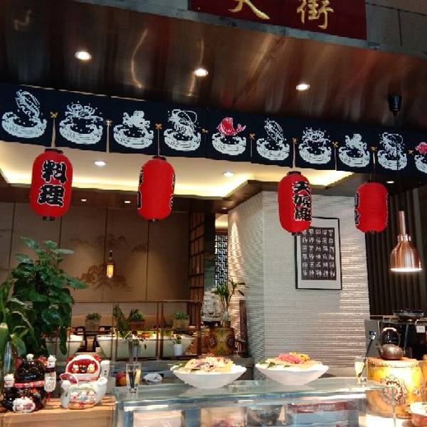 一次性价比很高的五星酒店自助美食体验活动。早上乘坐高铁到达泰山站,来到一座城市就想密探这座城市的美食,泰安作为旅游城市美食店肯定不少。想吃自助餐周围搜索一下便发现不远处万达广场的万达嘉华酒店就有自助餐,但午餐只有周末有,于是电话再次询问确认,幸运得是那天也就是周四中午自助餐厅接待一个团队自助午宴,自助餐是开的,99元一位,那边小妹立即帮我预留了位置。意外的惊喜,也感谢他们为我这个吃货散客的着想。 自助餐厅在酒店一楼,一进大堂右手边就是,右边是洗手间,对客人来说很方便。和其他地方万达嘉华品牌酒店装修风格一样,黑色的地板,暖色调的装修在灯光的照射下时尚,典雅,商务风但不失轻松。自助餐公分为日本料理,面档,冷菜海鲜冷盘区,水果区,饮料区,热菜区,甜品区8个档口,菜品种类多样,出品新鲜最值得点赞的是海鲜区,泰安不是一座沿海城市,冷盘区的海鲜,热菜区的油焖大虾口感很鲜,能做到不容易。菜品中西日餐都能品尝到,中餐尤其热菜带有鲁菜特点,推荐下打卤面不错。不足的地方就是泰安当地饮食少,除了发现了有泰安啤酒,没有发现泰安豆腐,煎饼等。希望酒店可以改善下。一位客人来品尝五星酒店自助不仅仅品尝国际美食,也希望品尝到当地特色美食。服务态度一直很好,会灵活变通,由于那天中午只有我一个散客,服务员给我安排了一个靠窗位置,避开了于团队的相互干扰,而且位置绝佳,让我身心愉悦。自助餐时间还没有结束,由于他们酒店有组织消防演练培训,一位中年大哥应该是厨师长特意留下几个服务员为我服务直到我离开。总之,泰安万达嘉华自助餐是一次很棒的美食体验。
