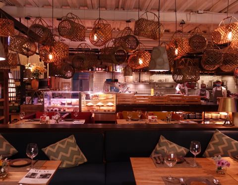 乌玛市集餐厅位于白沙大道南城百货内,精致的吊灯和摆放整齐的鲜花,营造了浪漫的情调。餐厅里的招牌榴莲披萨嚼劲十足,西班牙海鲜饭鲜香味美,值得品尝。
