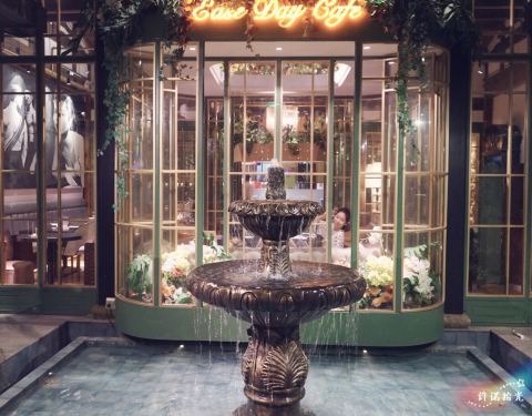 环境特别特别优雅复古的一家咖啡店,进门还有一个入户喷泉水池。那里有两层。大厅和小间都有很多座位,可以容纳不同人数的需求。 每张餐桌上放着一个空气缝里IAS风的装修风格非常讨喜,拍照随便拍都很好看,是一家名副其实的网红店。 餐品也都不错,点了一份草莓松饼,一份披萨,还有玫瑰奶茶的颜值和味道都很好。 进门的时候服务员会主动帮忙把门拉开,用餐的时候也会经常过来撤空盘,服务很周到。。