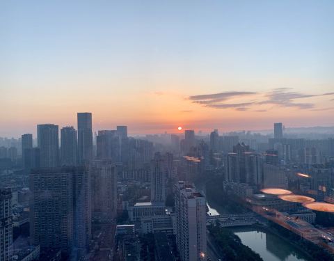 在万达瑞华41层的美食汇用的自助早餐,工作原因去的时间比较早,在东边一侧的落地窗,居然看到了日出,很欣喜。自助早餐的餐厅味道很不错,牛肉面里面的牛肉味道很香,就是牛肉块稍微少了一些。新鲜炸出的果汁,...