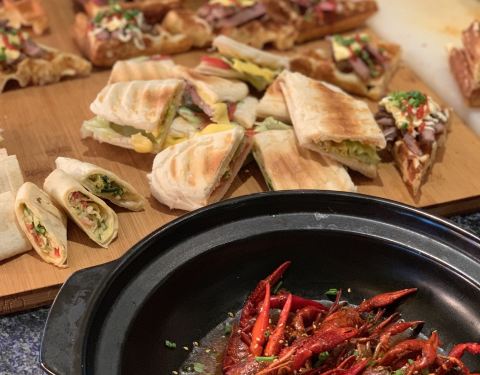 总评: 近期推出的南美烤肉主题自助餐,真的是很精彩呢! 比起那些往常的大众型自助餐,这一次的创新真的很成功哦。 各种肉类,不同的搭配,不一样的风味,看着就特别有食欲。 晚市318/人,午市168/人(官微商城) 晚市232/人,午市115/人(周三招行五折) 请提前预订哈,不然会扑空,场面太火爆,位置很紧俏! 评分:90分 性价比:❤❤❤❤ 再此之前,我对瑞华的自助餐就蛮喜欢的,况且不定时还有各种主题活动,以及优惠促销。 从小到大吃了很多的巴西烤肉,对于那些烤肉的品种真的也是看腻了,毫无新鲜感,但是他们家的这次南美烤肉自助菜肴,真的是花样繁多。 【炙烤饭团猪颈肉】这个名字是我自己乱取的啦,吃得太投入,忘了看菜名。在日式料理区,酱香饭团在铁板上煎烤加热,然后放上一片新鲜出炉的烤猪颈肉,装盘前再用火枪炙烤,米香肉香融合一体,一口吞下,那种满足感,油然而生; 【烤肉华夫饼】平常吃的华夫饼都是甜味的,这次不仅是咸口,还有堆砌了厚厚的烤肉,淋上特制酱汁,好看也好吃哦; 【培根火腿】【烤牛舌】这个是由穿着牛仔风情的店员,推着烤肉小车车到客人面前,亲自切割入盘,烤肉最新鲜的呈现,配的是我们四川人最爱的辣椒面,嘿巴适! 【海陆拼盘】蒜香蒸澳洲龙虾和鲍鱼,配黑胡椒牛排,以及现煎的鹅肝,这么一盘丰富又高级的海陆大餐。 再来说说【甜品区】: 各种热带水果慕斯蛋糕,颜色炫丽斑斓,看着食欲大开,口味很多,一样切一小块尝尝,各有千秋,都蛮好吃的。 “意式奶冻”我挺喜欢这个小甜点的,酸酸甜甜,奶味也足,细腻顺滑,出品也精致; “巧克力布朗尼”在我都吃到走不动的时候,甜品区还在更新,这个就是其中之一,方块一样的外形,巧克力脆壳中间包裹着浓郁醇香的布朗尼蛋糕,还有脆脆的坚果仁儿。 【热菜区】 很多川味菜肴,比如大家熟知的毛血旺、麻辣小龙虾、红烧牛肉、火爆海鲜等等。 东南亚风味的:咖喱鱼丸、咖喱蟹、咖喱牛肉、烩海鲜什锦等等。 【海鲜】 但是特别值得关注的是,他们这儿有免费无限供应的“现开生蚝”哦!个头大颗饱满,口感鲜嫩,对于生蚝控来说,简直是莫大的福音啦。 其他海鲜类包括:虾、青口、老虎蟹、雪蟹腿、蓝龙虾。 “蓝龙虾”这个是在其他自助餐厅很少很少见的种类,除了壳比较难剥之外,其他没毛病,吃龙虾吃到爽。